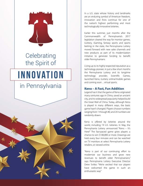 In a U.S. state whose history and landmarks are an enduring symbol of American freedom, innovation and firsts continue for one of the nation’s highest performing and most technologically innovative lotteries.